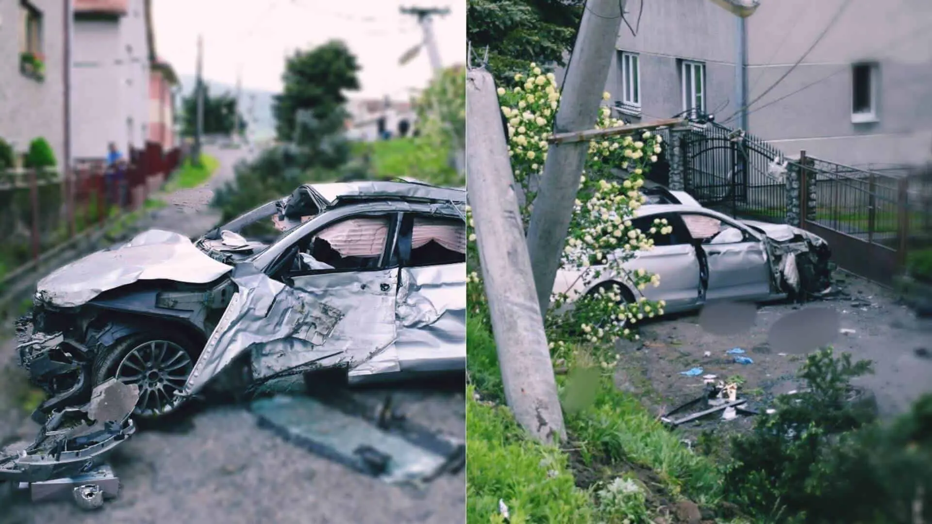 V križovatke na začiatku obce narazilo osobné vozidlo BMW GT 530d ľavou prednou časťou do odbáčajúceho vozidla Suzuki Ignis, v dôsledku čoho zišlo mimo cesty, zachytilo tri stromy a narazilo do betónového stĺpa rozvodu elektrického napätia, ktorý zlomilo.