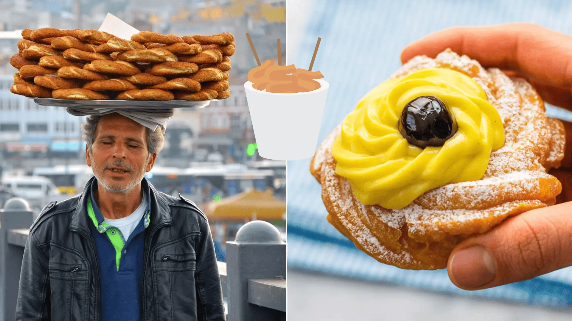 Slávny !turecký bagel“ pokrytý sezamovými semienkami sa tradične namáča do času alebo pojedá spolu so syrom a zeleninou. Čerstvý a teplý z pece sa podáva na všetkých rušných turistických uliciach.