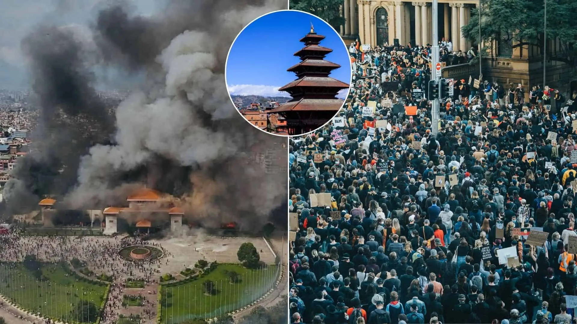 Protesty pokračujú aj napriek zákazu vychádzania v metropole a ďalších mestách. Demonštranti podpaľovali domy a sídla viacerých politických lídrov, vrátane premiéra, predsedu Nepálskeho kongresu Šéra Bahádura Deubu a prezidenta Ráma Čandru Púdela. Podpaľovanie zasiahlo aj samotnú budovu parlamentu, z ktorej sa dym stúpa do ovzdušia, čo odráža napätú situáciu v krajine.