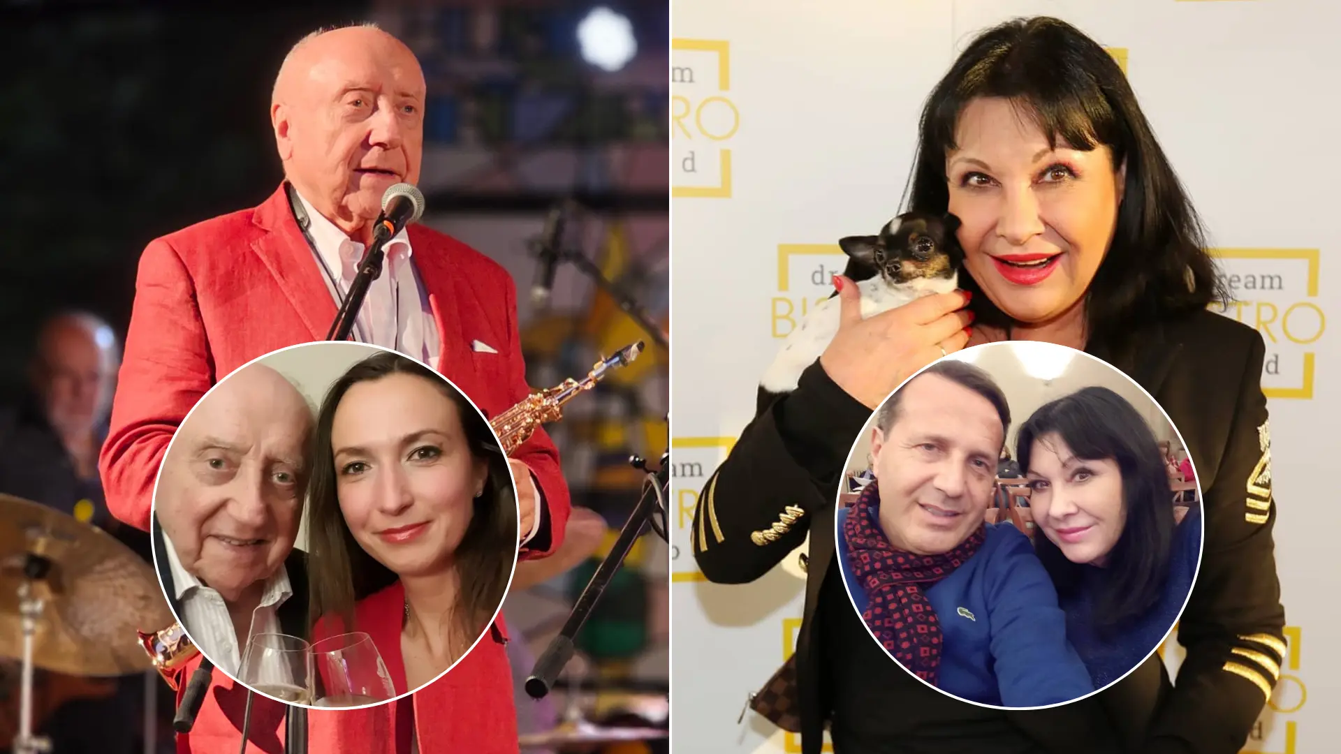 Saxofonista Felix Slováček, na snímke v krúžku s exmilenkou Luciou Gelemovou. Vpravo herečka Dagmar Patrasová, v krúžku dole s bývalým priateľom Vitom z Kalábrie. Foto: Instagram/luciegelemova, Instagram/dadapatrasova_oficialni , Instagram/dadapatrasova_oficialni , Facebook/Felix Slováček Fanclub ,