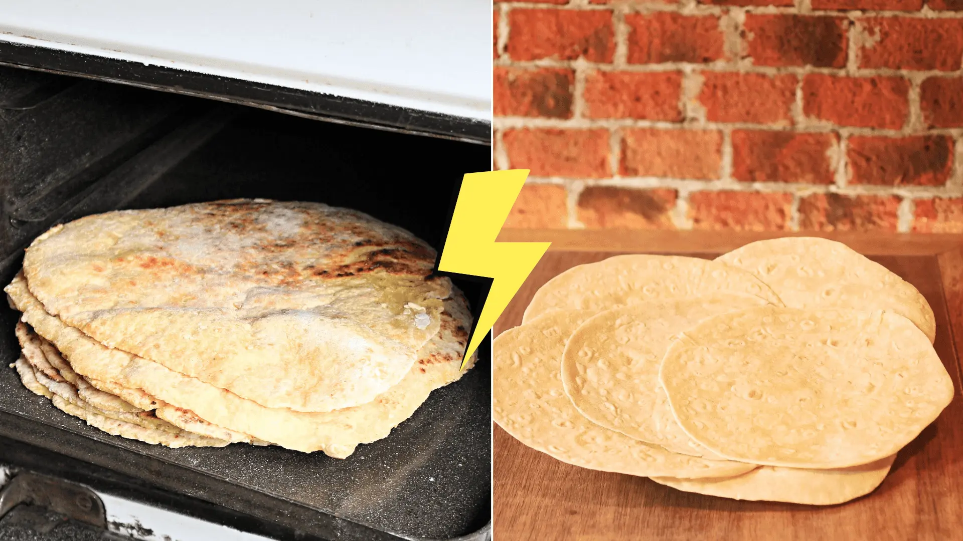 Tortila (v našom porovnaní pšeničná, nie kukuričná) je zvyčajne len z múky, vody, tuku a soli – bez zemiakov.