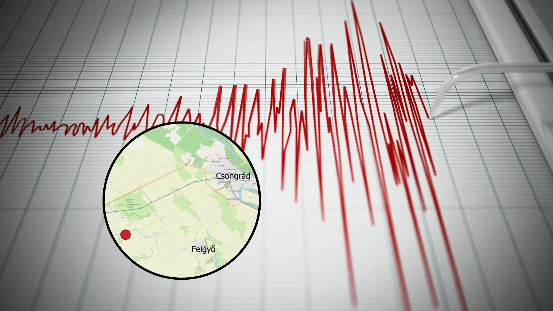V stredu (22. 10.) po polnoci zasiahlo maďarský región Čongrád zemetrasenie s magnitúdou 4,1, ktoré pocítili obyvatelia Čongrádu a okolitých osád. Foto: Facebook/Kövesligethy Radó Szeizmológiai Obszervatórium, canva