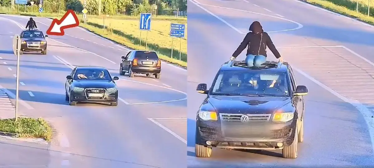 Ak by sa rozdávali ceny za hazard so životom, táto žena by bola finalistkou. Počas jazdy totiž sedela na streche v strešnom okne auta.